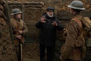 Sam Mendes directs on the set of the World War I epic 1917 (2019)