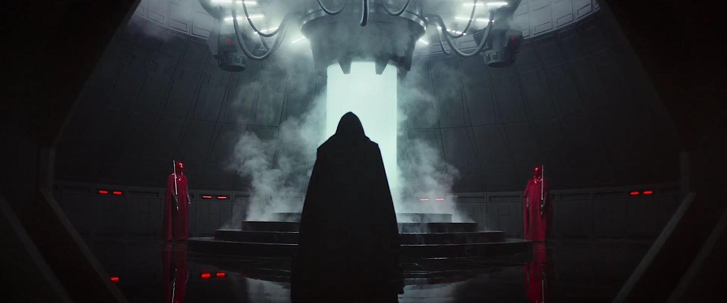 The Emperor? Maybe…but the person seems too tall, and is moving too fast. Plus, it looks like he’s beginning to kneel as the shot fades out – and The Emperor kneels to no one.