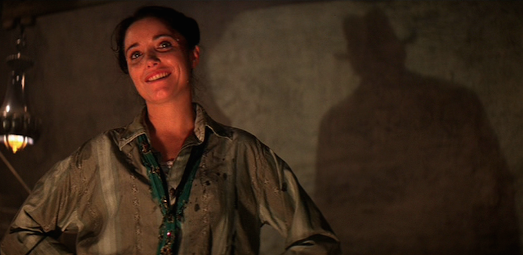 With dialogue, Spielberg cuts back and forth between each character’s close-ups, another traditional approach. Even the Spielberg Oner is more simplified (making it more deceptive); for example, the one-take drinking standoff between Marion and a patron (have you ever noticed that the whole scene is one take?) is done simply through panning back and forth, not the more complicated choreography he was notorious for, i.e. switching frames, setups, and focus all in one tracking shot from points A to B to C.