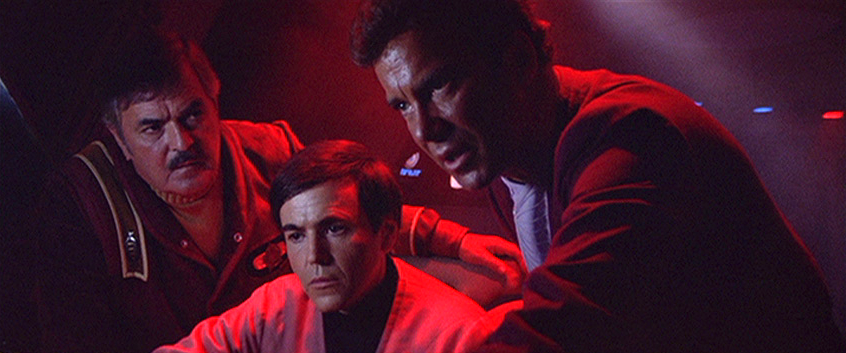 Despite being hampered by things like obviously artificial soundstages for the Genesis planet (the budget didn’t allow for enhancing actual location shoots) or a low-rent cantina compared to their Star Wars rival, Nimoy makes the most of what he’s given by crafting a visual language that intensifies conflict, character, and emotion.