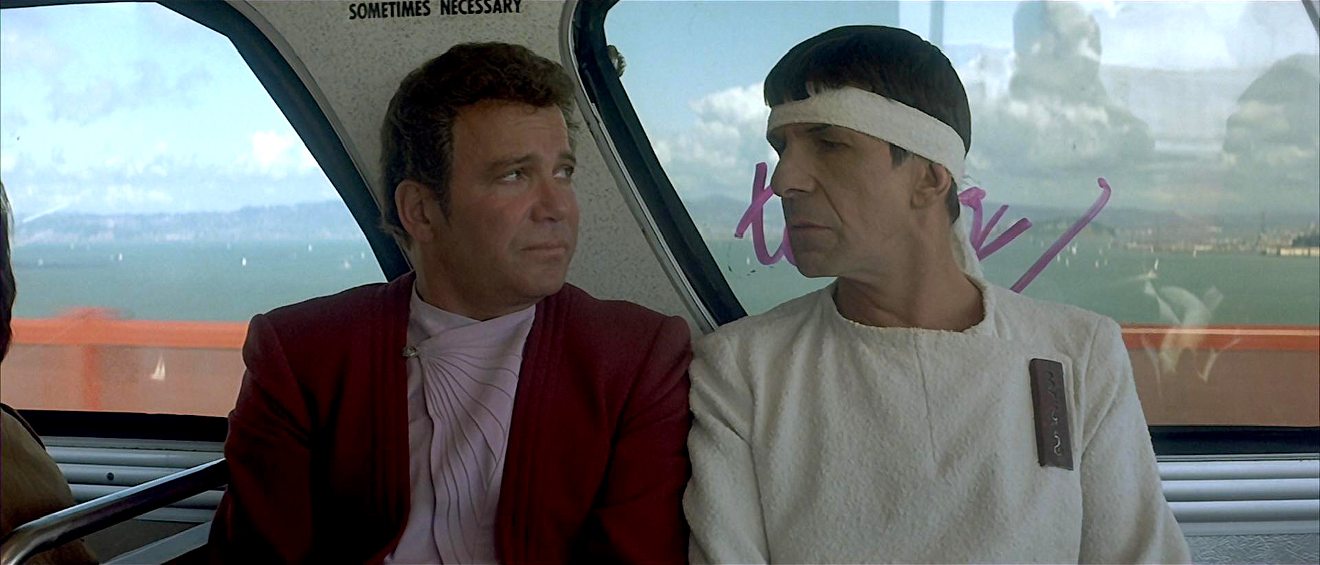 Utilizing science also remains a staple in their problem solving, even as their repartee across the board has never been better (the “Yes/No” back-and-forth between Kirk and Spock in the truck scene is a highlight, and was entirely improvised). I should add, too, that composer Leonard Rosenman‘s Oscar-nominated score brought a welcome jauntiness to the nautical tone James Horner had established, providing some of the best, most enjoyable themes of the series.