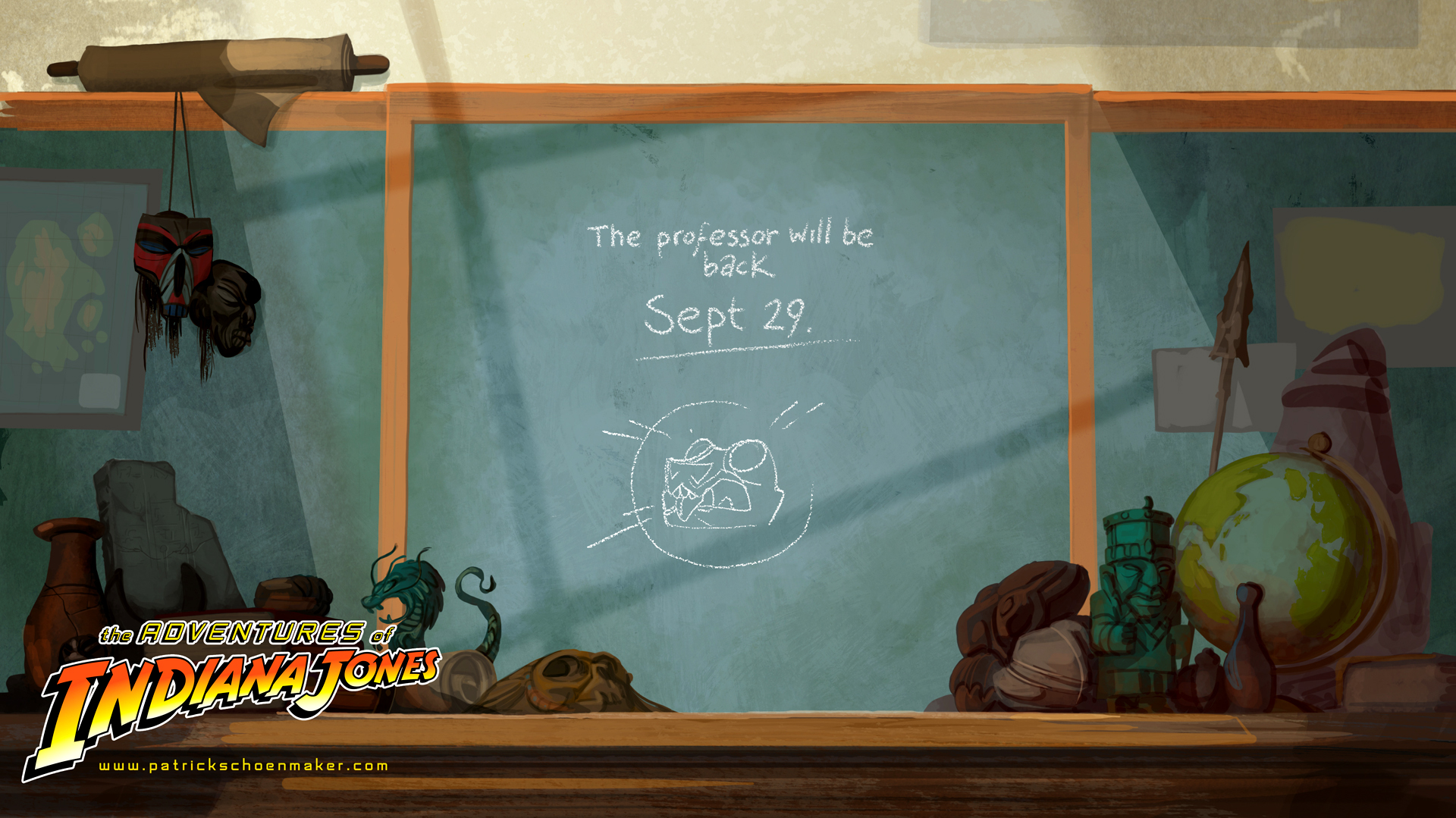 Here’s the deal. According to a report from Australia’s Film Ink web site, Lucasfilm commissioned artist Patrick Schoenmaker to create a print of a cartoon-looking Indiana Jones as part of the Kingdom of the Crystal Skull marketing push. Apparently Schoenmaker became so obsessed with the possibilities that he began to develop his own animated Indy fan film.