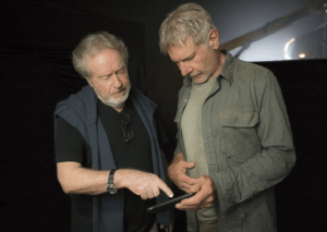 Ridley Scott and Harrison Ford on set for BLADE RUNNER 2049.