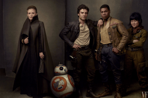 VFLJheroes Carrie Fisher, Oscar Isaac, John Boyega, and Kelly Marie Tran star with BB8 in STAR WARS: THE LAST JEDI