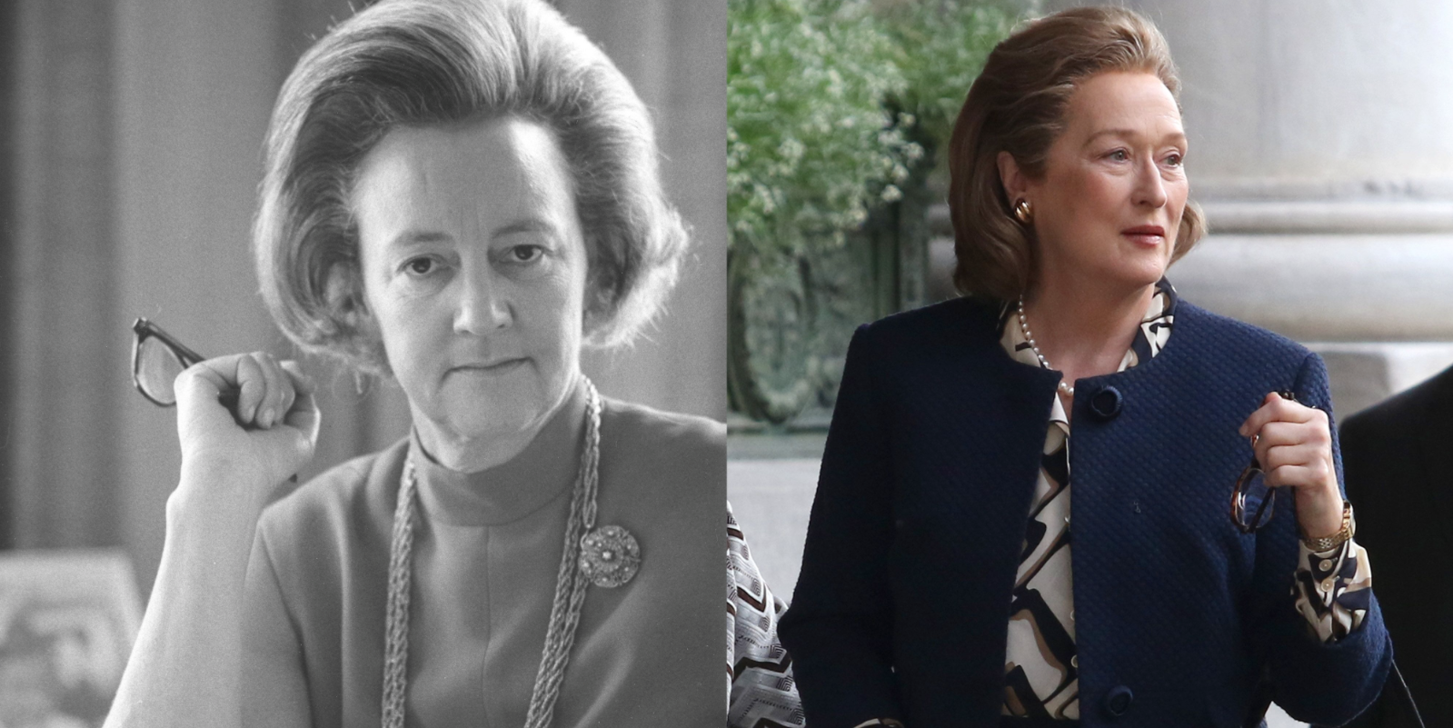 The real Kay Graham, and Meryl Streep as Kay Graham in THE PAPERS.