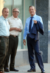 Bob Odenkirk, David Cross, and Tom Hanks on set of THE PAPERS.