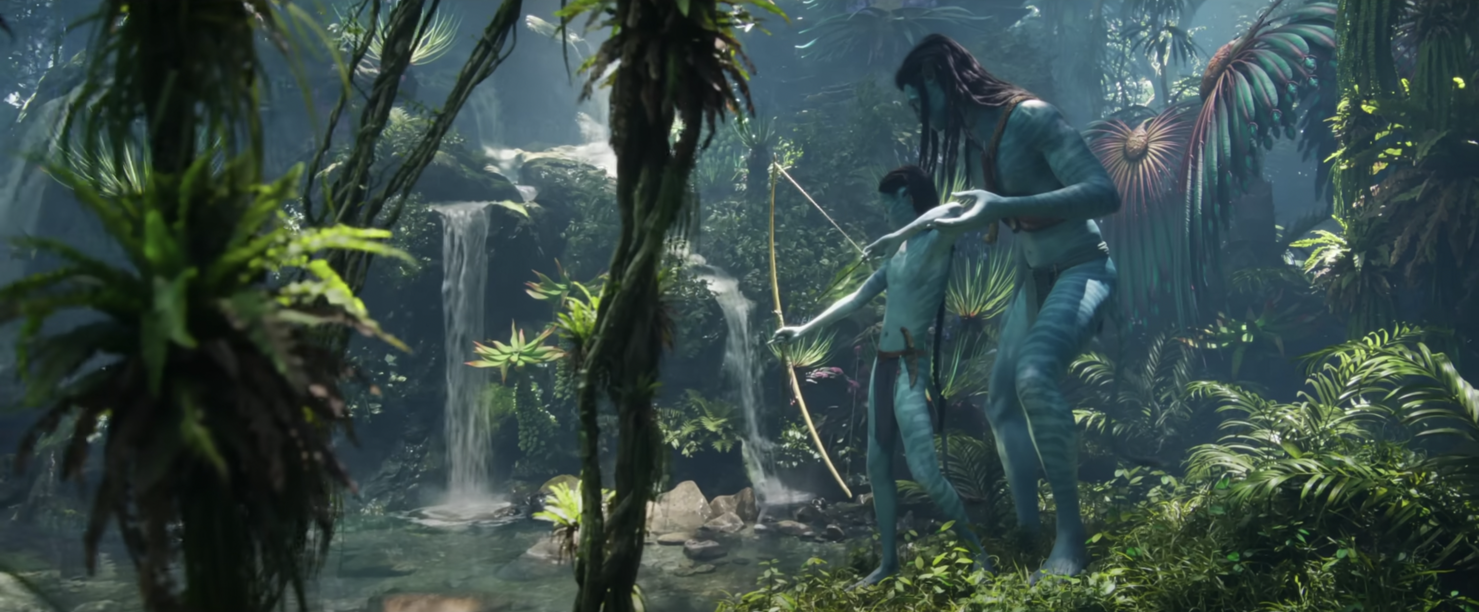 Avatar2_FatherSonHuntFish Sully (Sam Worthington) hunts fish with his son in director James Cameron’s AVATAR: THE WAY OF WATER (2022)