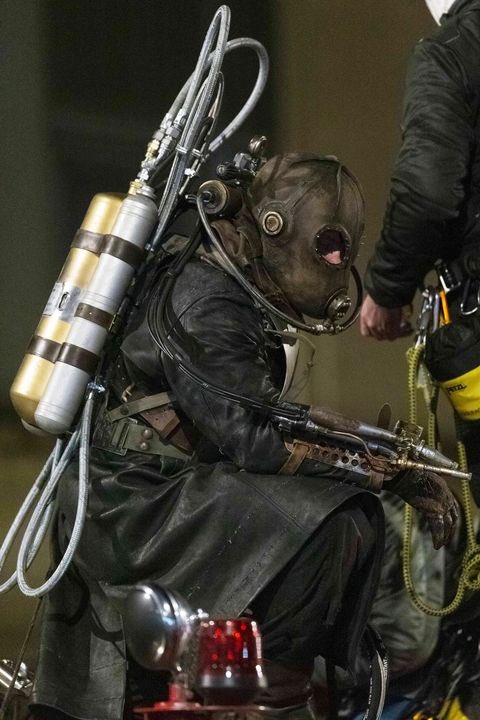 Batgirl_FireflyKneels Brendan Fraser in costume as the villain Firefly in the new multiverse DC movie BATGIRL