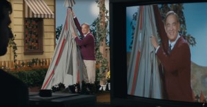 BeautifulDay_RogersSetTent Tom Hanks stars as Fred Rogers in A BEAUTIFUL DAY IN THE NEIGHBORHOOD (2019)