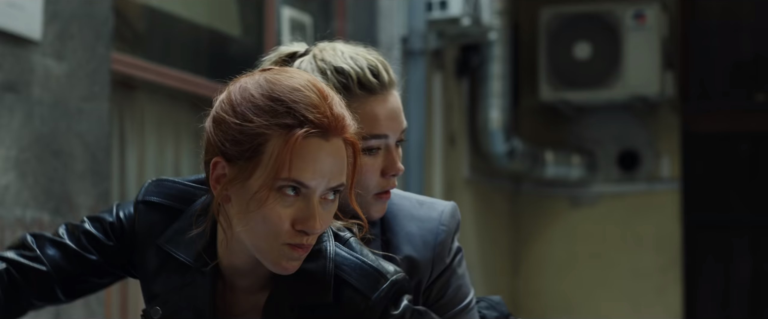 Scarlett Johansson (Natasha / Black Widow) and Florence Pugh (Yelena Belova) star in the new Marvel action movie BLACK WIDOW (2020)