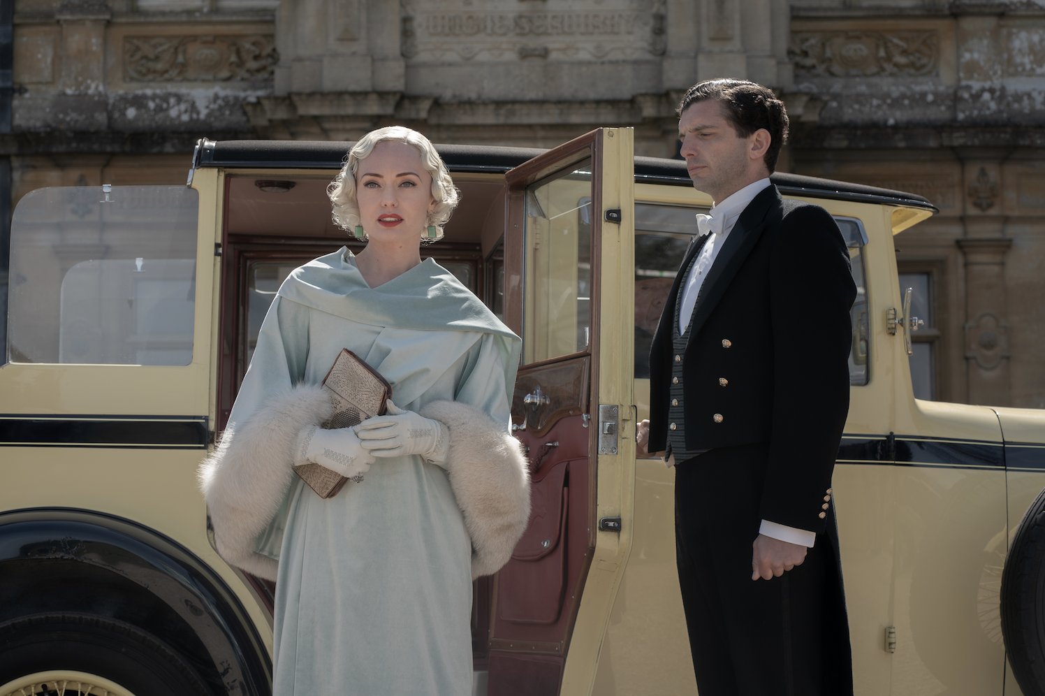 Laura Haddock joins the cast as a new arrival to Downton (valeted by Michael Fox’s footman Andy) in DOWNTON ABBEY: A NEW ERA (2022)
