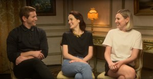 DowntonCineworld_Giggles1 Allen Leech, Michelle Dockery and Laura Carmichael, from the cast of DOWNTON ABBEY (2019)