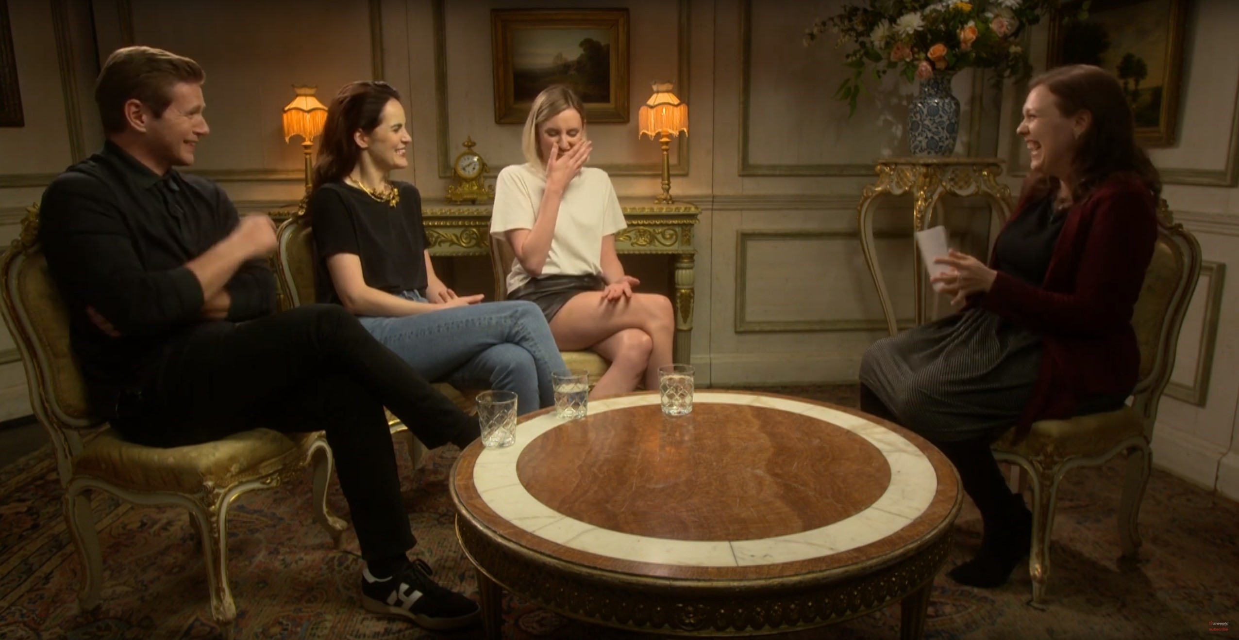 DowntonCineworld_Giggles5 Allen Leech, Michelle Dockery and Laura Carmichael, from the cast of DOWNTON ABBEY (2019)