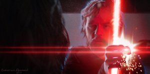 DuelOfTheFates_4LukeKyloSaber The Force Ghost of Luke confronts Kylo Ren on Mustafar in STAR WARS: DUEL OF THE FATES