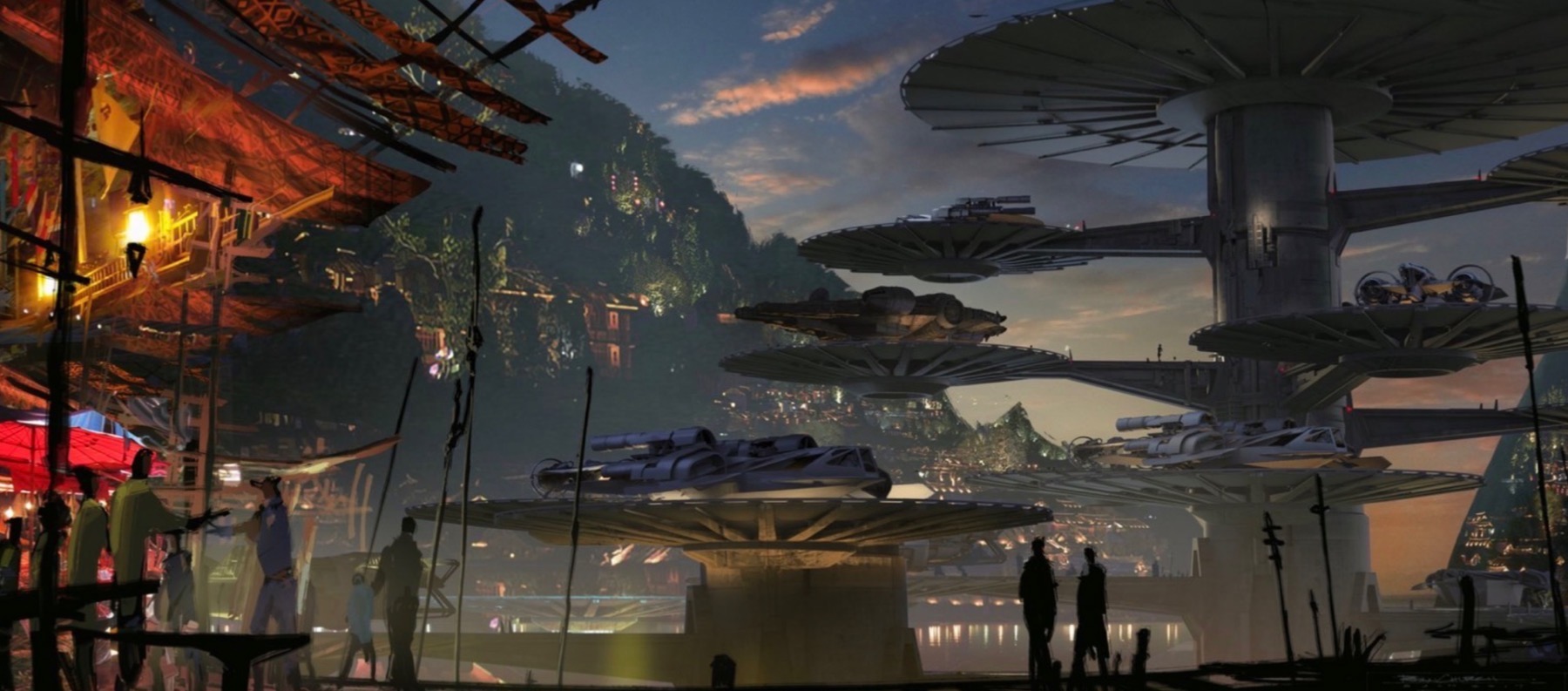 DuelOfTheFates_BonadanDocking The Millennium Falcon lands on a docking bay platform on the planet Bonaden in STAR WARS: DUEL OF THE FATES