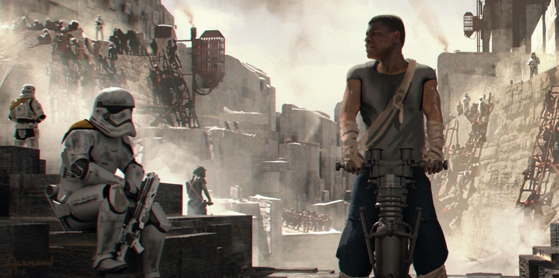 DuelOfTheFates_FinnPrisoner Finn is a prisoner at a First Order rock quarry on Coruscant in STAR WARS: DUEL OF THE FATES