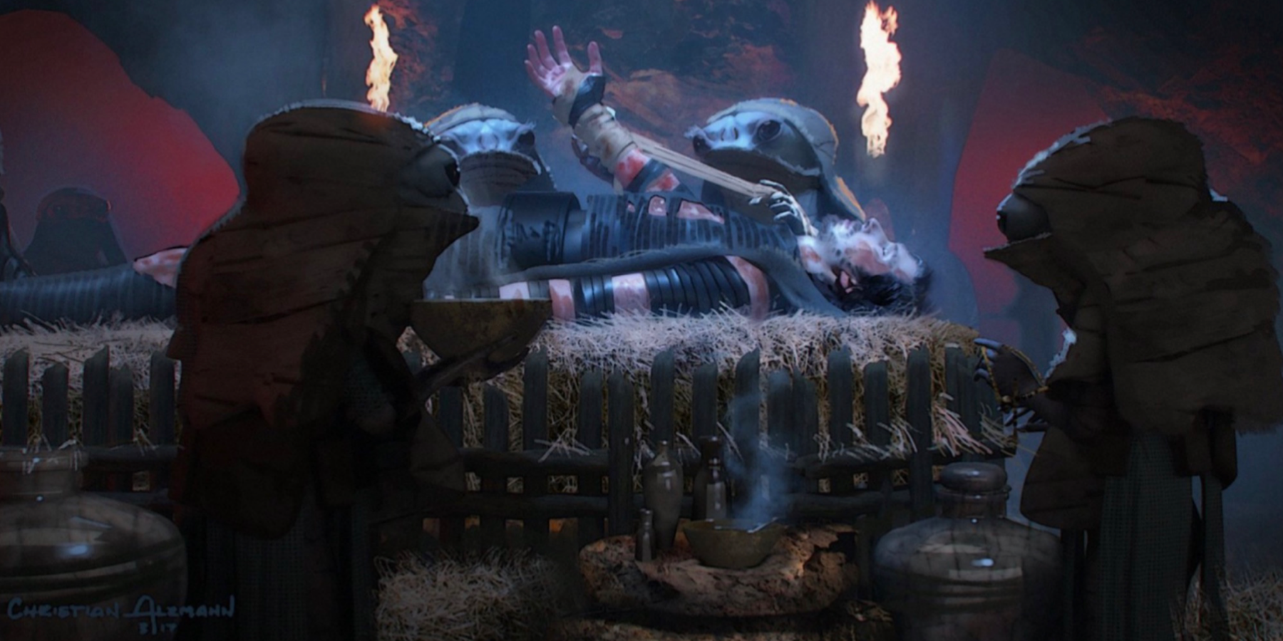 DuelOfTheFates_KyloSurgery Wommels treat Kylo Ren’s life-threatening injuries on the planet Moraband, in STAR WARS: DUEL OF THE FATES