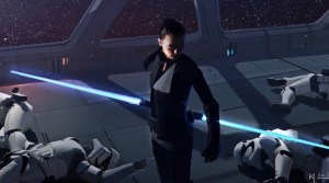 DuelOfTheFates_ReyDefeatsTroopers Rey defeats First Order Stormtroopers in concept art for STAR WARS: DUEL OF THE FATES