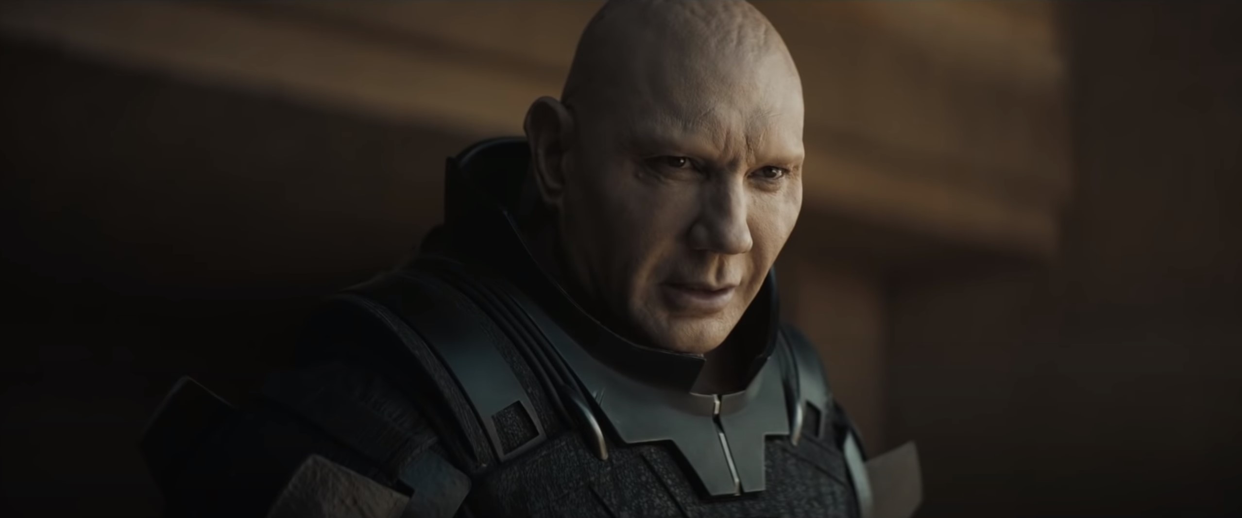 Dave Bautista co-stars as Beast Rabban in Denis Villeneuve’s adaptation of Frank Herbert’s epic sci-fi novel DUNE (2021)