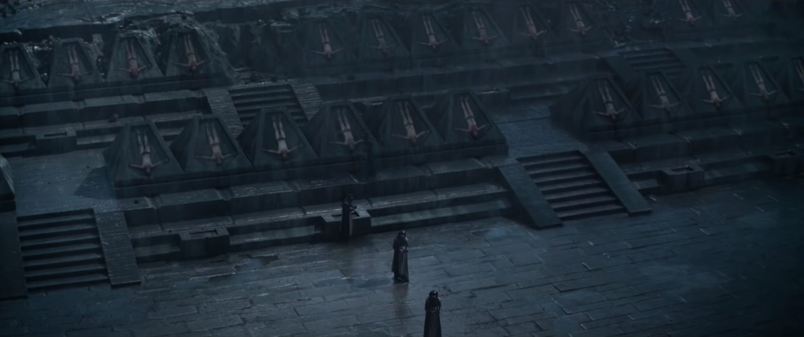 People are racked upside down in a scene from Denis Villeneuve’s adaptation of Frank Herbert’s epic sci-fi novel DUNE (2021)