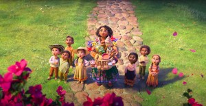 Encanto_MirabelKids Maribel (voice of Stephanie Beatriz) and children gaze upward in the Disney animated movie ENCANTO (2021)