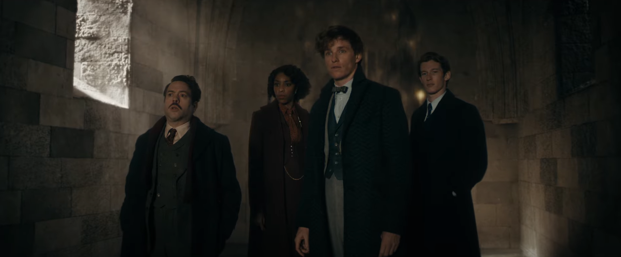 Dan Folger, Jessica Williams, Eddie Redmayne, and Callum Turner co-star in FANTASTIC BEASTS: THE SECRETS OF DUMBLEDORE (2022)