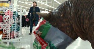 Paul Rudd’s Mr. Grooberson watches the Gozer beast snack at Walmart in the franchise reboot GHOSTBUSTERS: AFTERLIFE (2021)