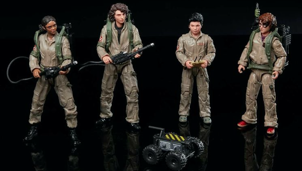 Hasbro toys for the new kids of GHOSTBUSTERS: AFTERLIFE. Lucky (Celeste O’Connor), Trevor (Finn Wolfhard), Podcast (Logan Kim), and Phoebe (Mckenna Grace)