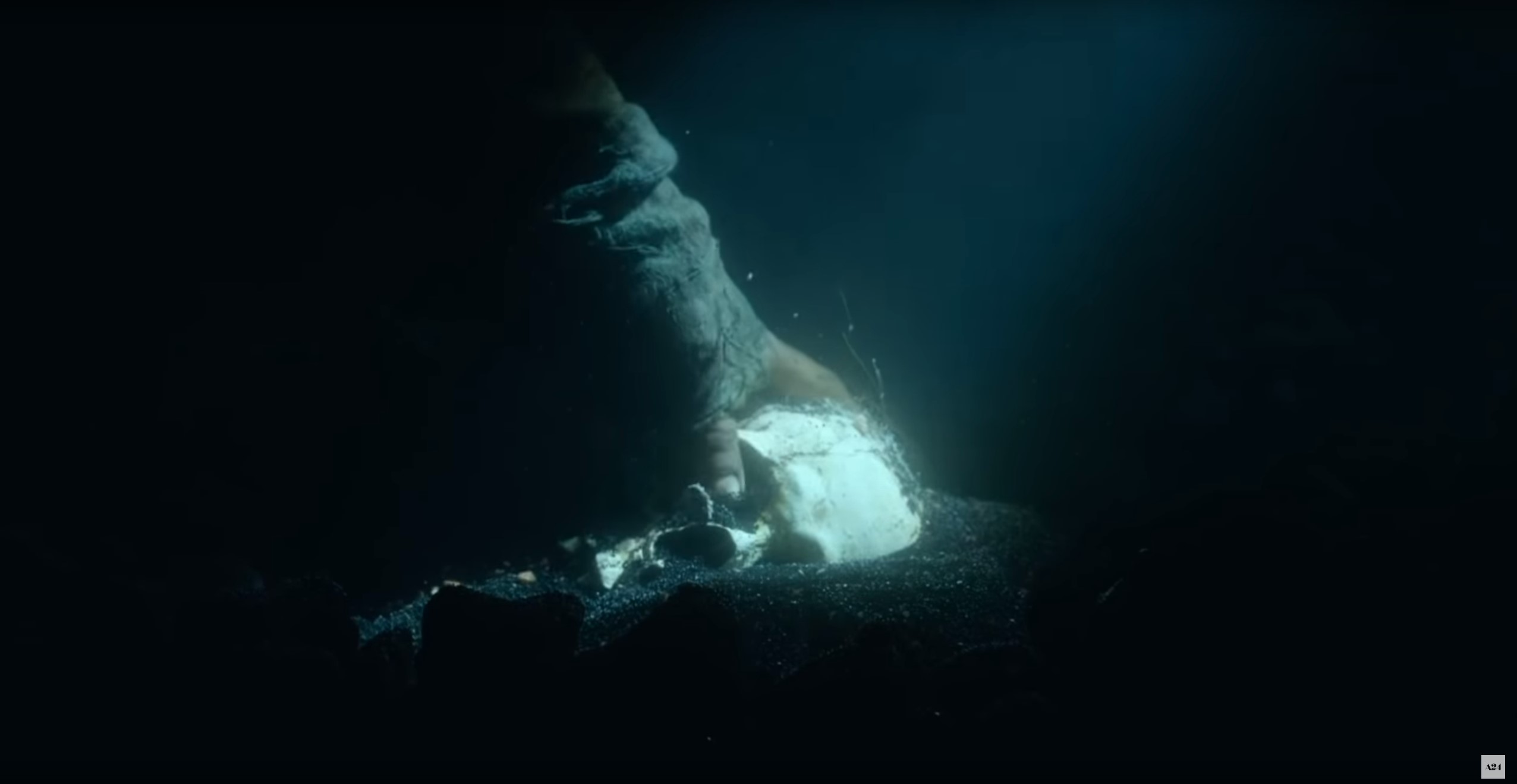 GreenKnight_Skull A human skull is lifted from the bed of a lake in David Lowery’s THE GREEN KNIGHT (2020)