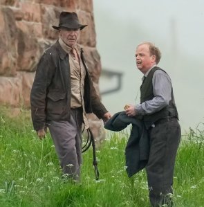 Harrison Ford and Toby Jones shoot a scene for INDIANA JONES 5 (2022)