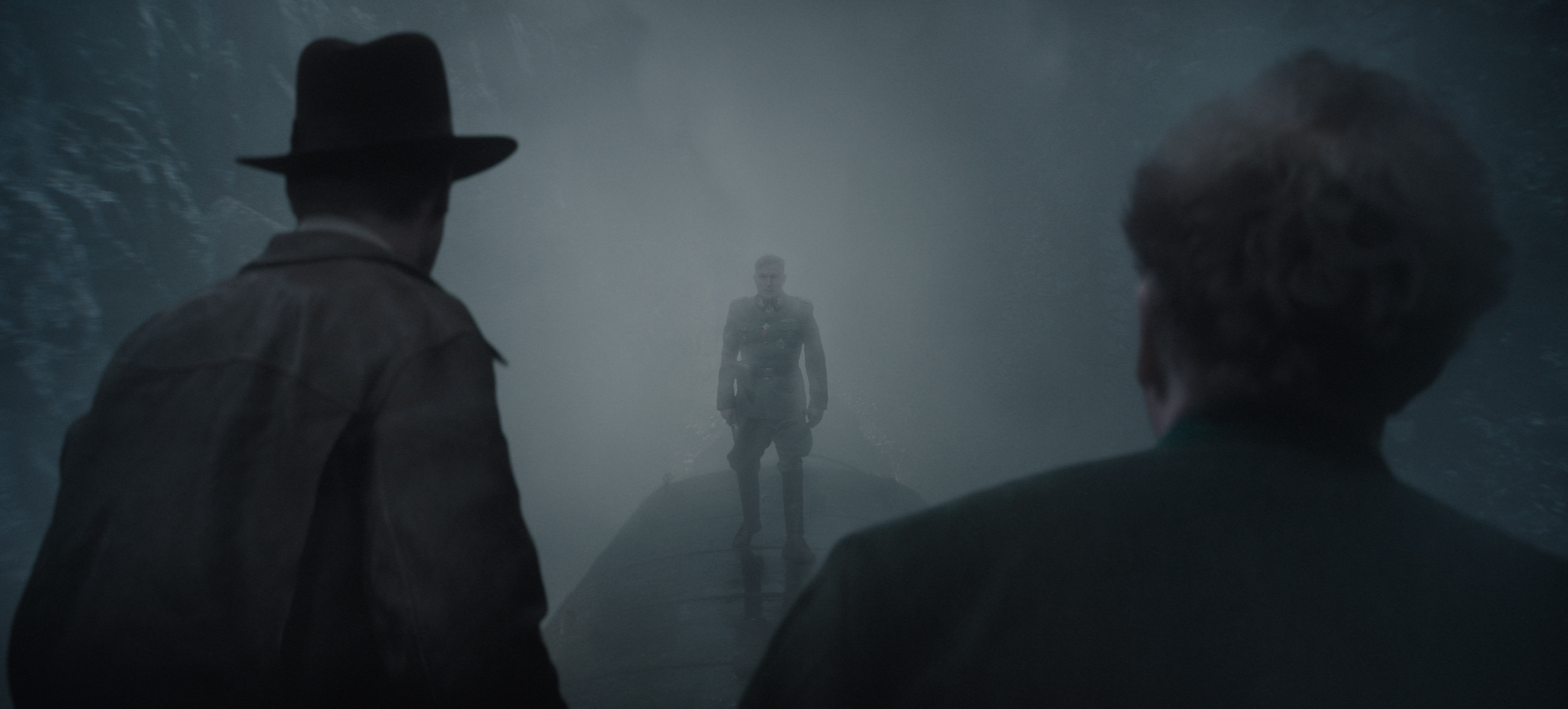 Indiana Jones (Harrison Ford) and his colleague Basil (Toby Jones) confront a Nazi on top of a moving train in Lucasfilm’s untitled INDIANA JONES 5 (2023)