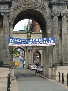 Indy5set_Apollo11banner A Glasgow street is transformed to an NYC ticker tape parade route for the Apollo 11 crew in 1969, for INDY 5.