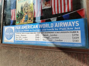 A display of PAN AM ticket fares, on the Glasgow set of INDY 5.
