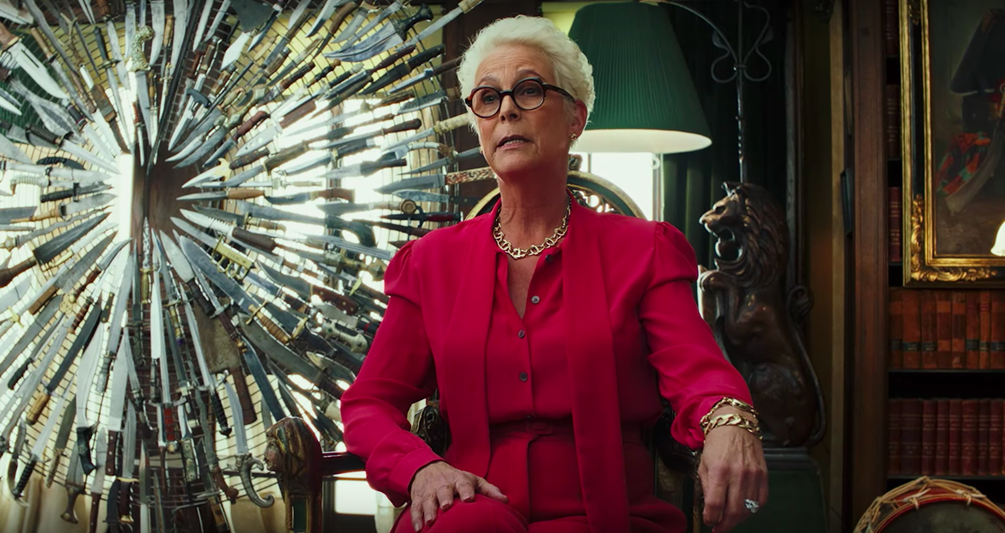 Jamie Lee Curtis co-stars in the murder mystery KNIVES OUT (2019)