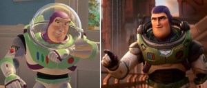 Side by Side comparison between the toy Buzz Lightyear and the “real” one in the new Pixar animated feature LIGHTYEAR (2022)