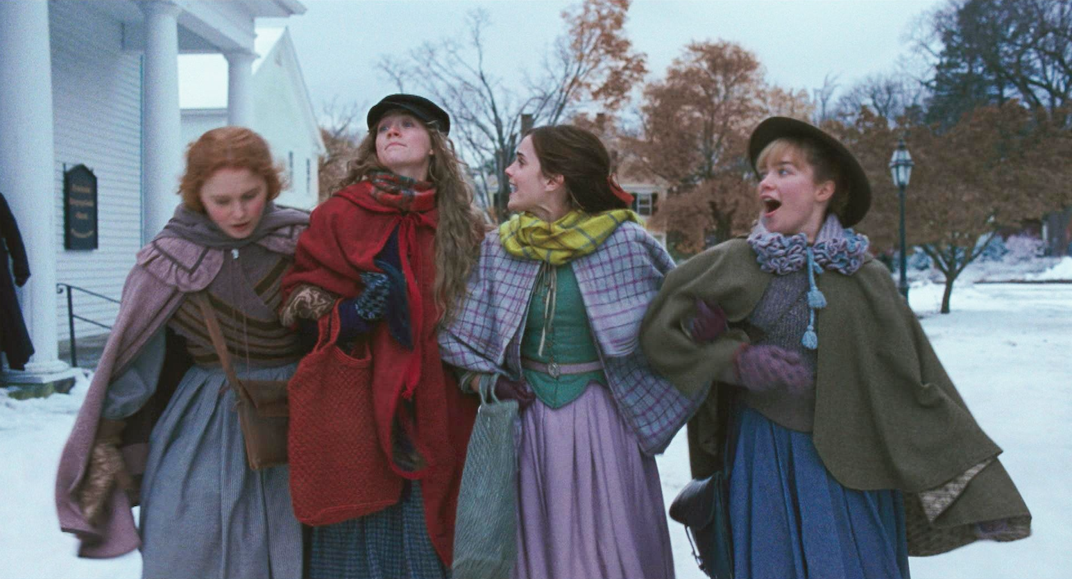 Eliza Scanlen (Beth), Saoirse Ronan (Jo), Emma Watson (Meg), and Florence Pugh (Amy) star in LITTLE WOMEN (2019)