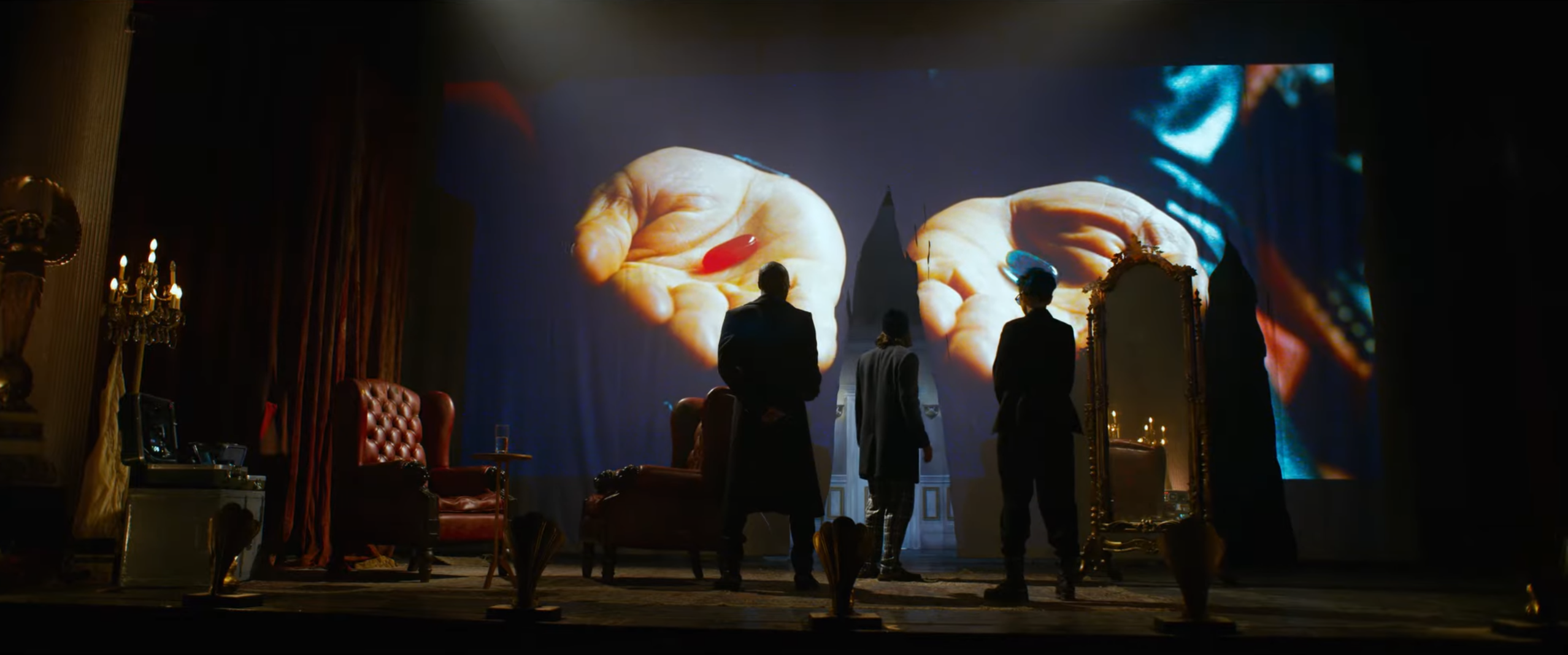 MatrixResurrections_RedBluePillsScreen Yahya Abdul-Mateen II, Keanu Reeves and Jessica Henwick star in THE MATRIX RESURRECTIONS (2021)