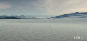 MidnightSky_ArcticLandscape THE MIDNIGHT SKY (2020) George Clooney as Dr Augustine Lofthouse treking across an arctic landscape.