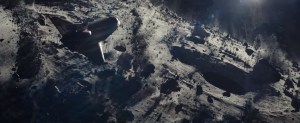 Moonfall_ShuttleMoonDust A space shuttle flies through Moon debris Roland Emmerich’s sci-fi disaster flick MOONFALL (2022)
