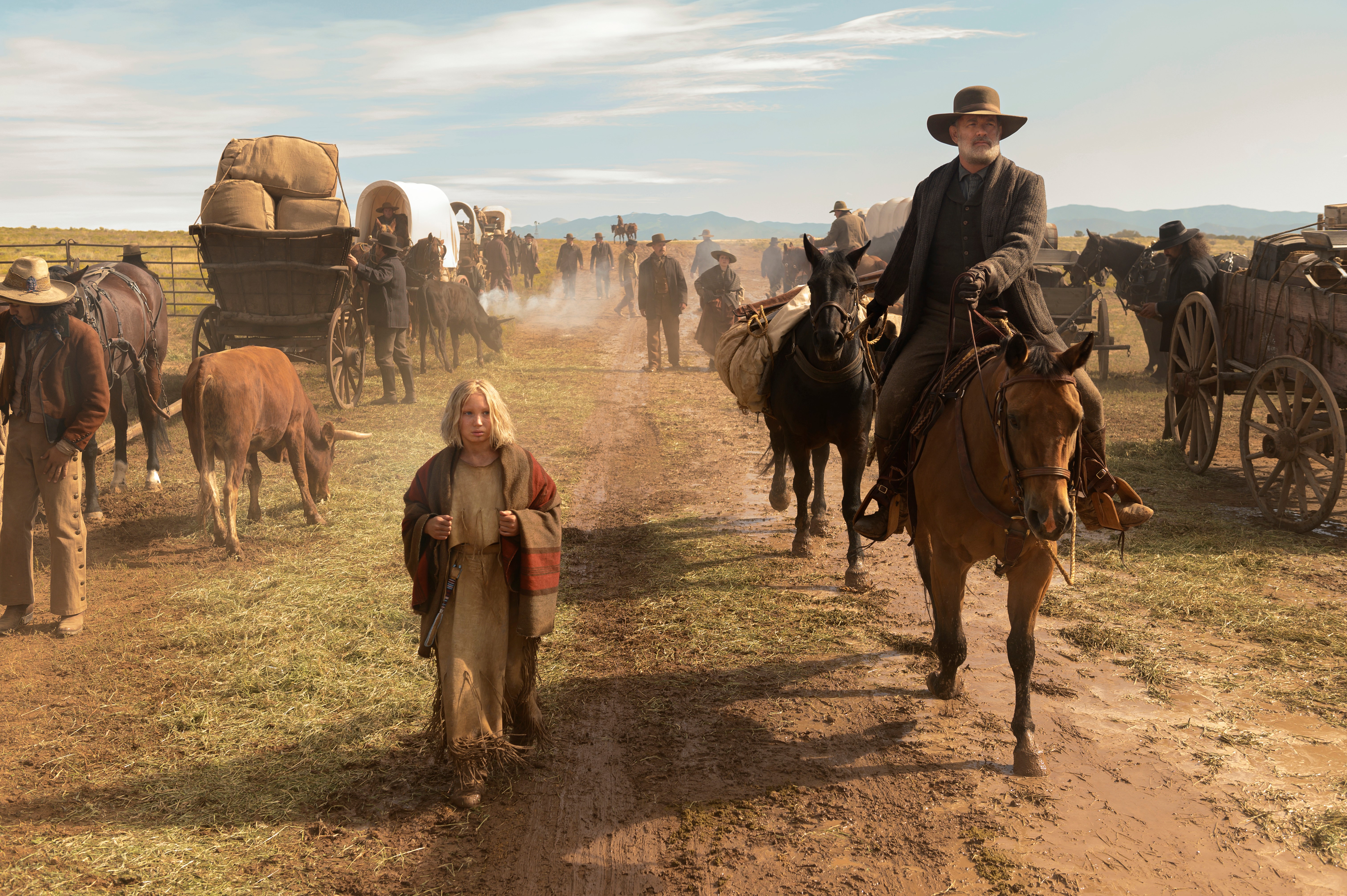 (from left) Johanna Leonberger (Helena Zengel) and Captain Jefferson Kyle Kidd (Tom Hanks) in News of the World, co-written and directed by Paul Greengrass.