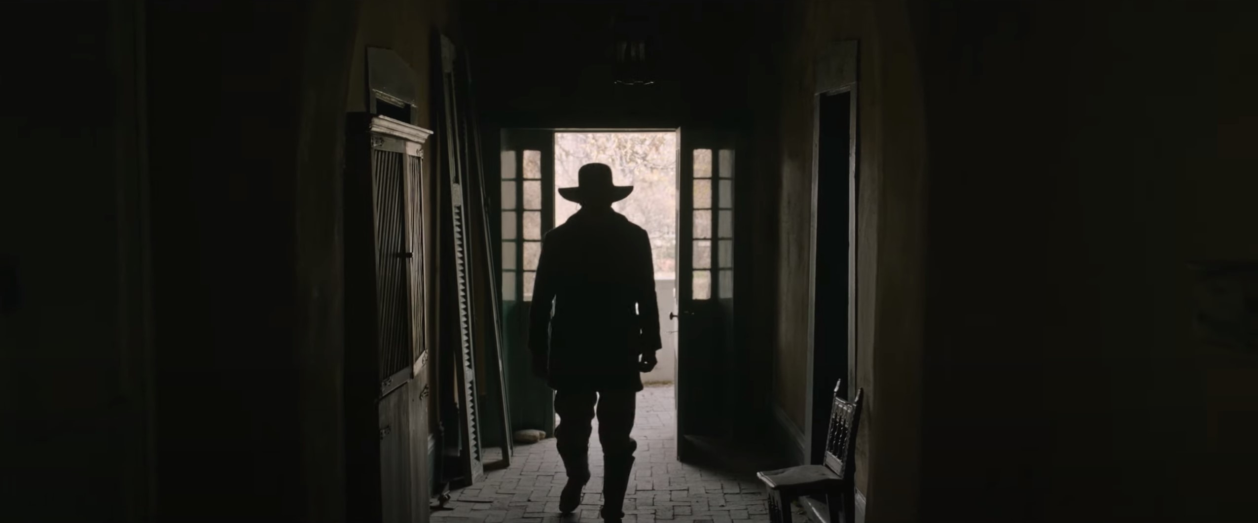 NewsOfTheWorld_SilouetteDoorway Tom Hanks plays Captain Jefferson Kyle Kidd in the Paul Greengrass Western NEWS OF THE WORLD (2020)