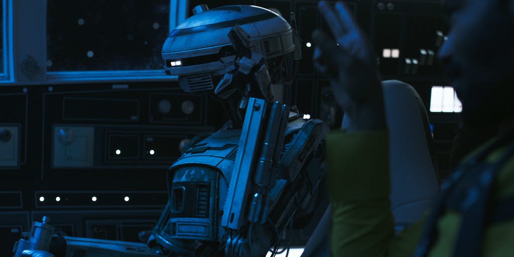 Phoebe Waller-Bridge as the robot L3-37 in SOLO: A STAR WARS STORY