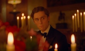 Spencer_CharlesCandles Prince Charles (Jack Farthing) at a Royal Family meal in the Princess Diana biopic SPENCER (2021)