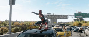 SpiderManNoWayHome_SpidermanCarRoof Spider-Man prepares to fight Doc Ock in SPIDER-MAN: NO WAY HOME (2021)