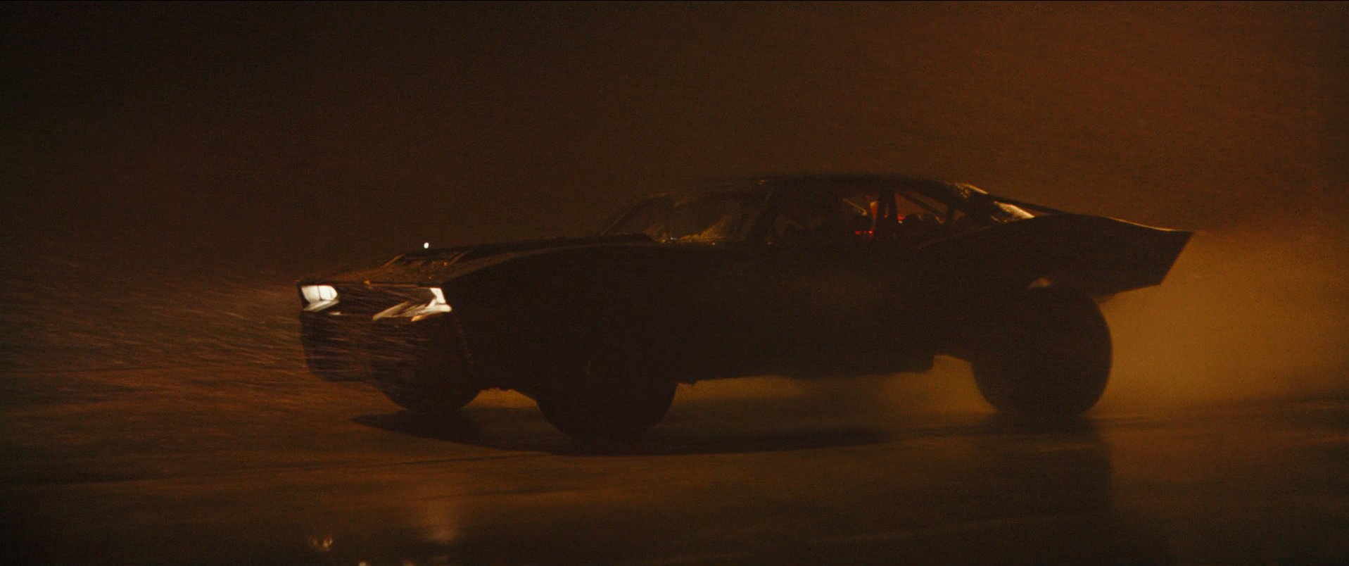 The new souped-up muscle car Batmobile in THE BATMAN (2022)