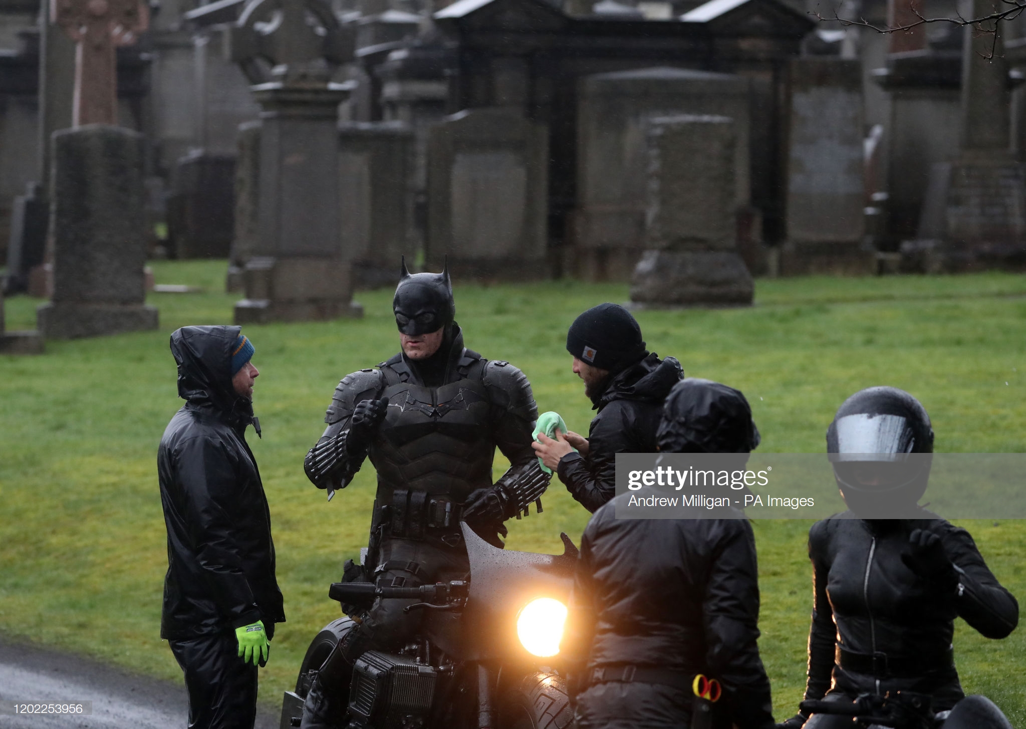 A man dressed as Batman during filming at the Glasgow Necropolis cemetery for a new movie for the surperhero franchise. (Photo by Andrew Milligan/PA Images via Getty Images)