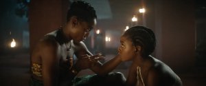 Lashana Lynch co-stars as a veteran warrior who helps train Nawi (Thuso Mbedu), a young recruit, in the true story action epic THE WOMAN KING (2022)
