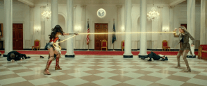 Wonder Woman (Gal Gadot) lassos villain Barbara Ann Minerva (Kristen Wiig) in the DCEU sequel WONDER WOMAN 1984 (2020)