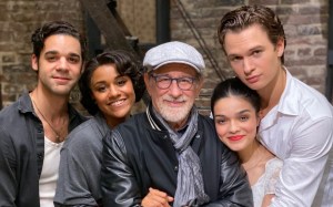 David Alvarez (Bernardo), Ariana DeBose (Maria), director Steven Spielberg, Rachel Zelger (Maria), and Ansel Elgort (Tony) from the final day of shooting WEST SIDE STORY (2020)