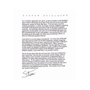 WSS_SpielbergWrapNote Steven Spielberg’s note to fans after the shoot officially wrapped for WEST SIDE STORY (2020)